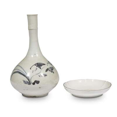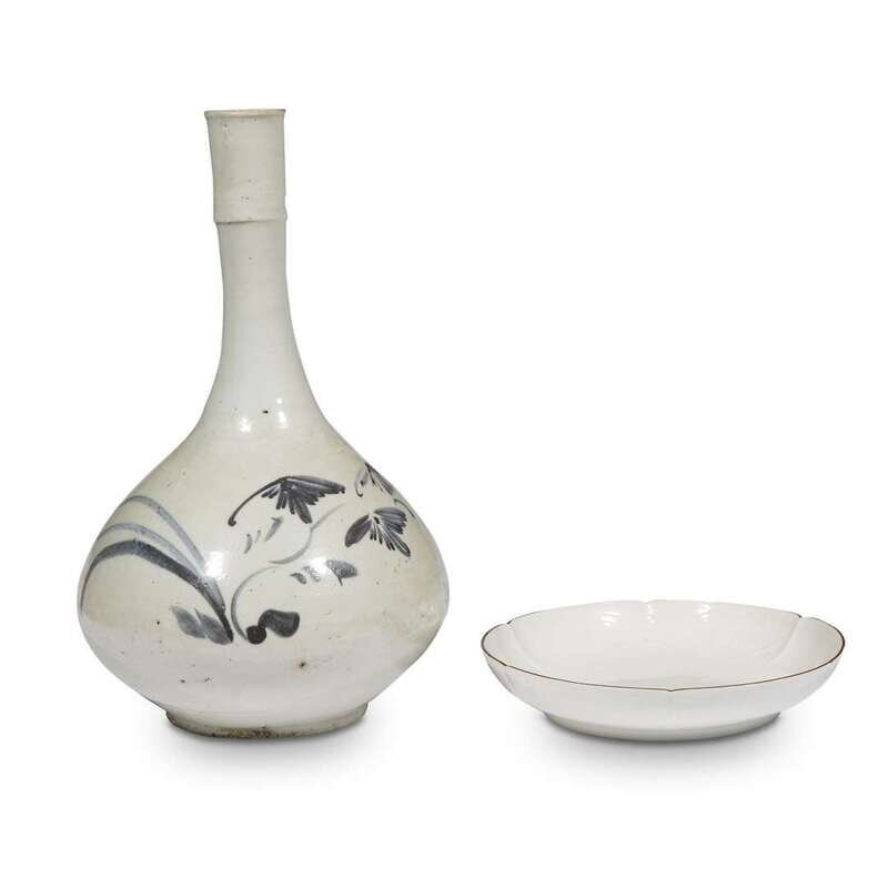 A Korean bottle vase and a Japanese Arita porcelain dish