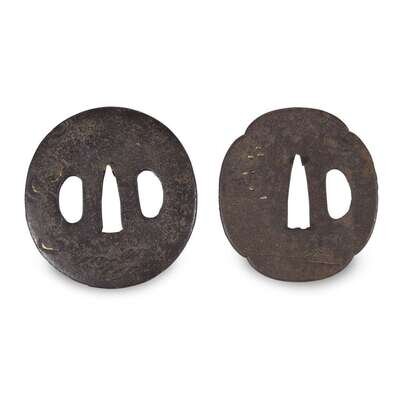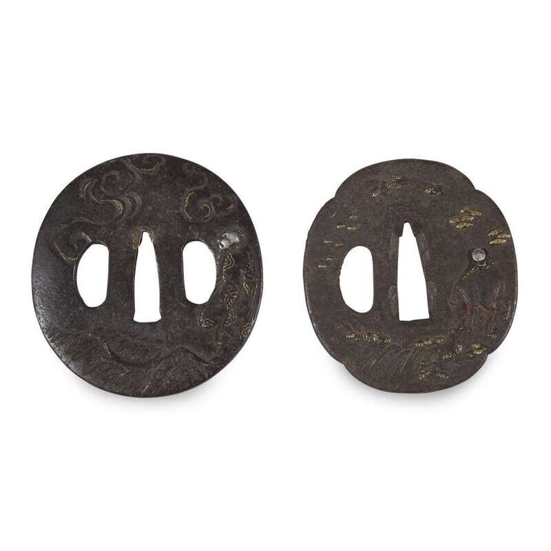 Two Japanese gold and silver-inlaid iron Tsuba edo period
