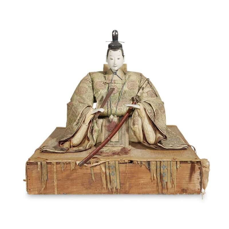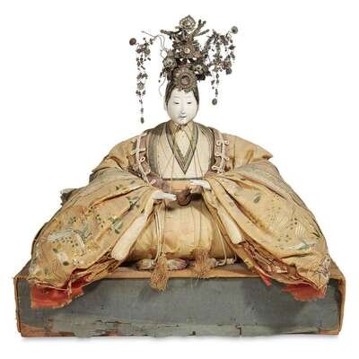 A pair of Japanese Emperor and Empress dolls, Ningyo