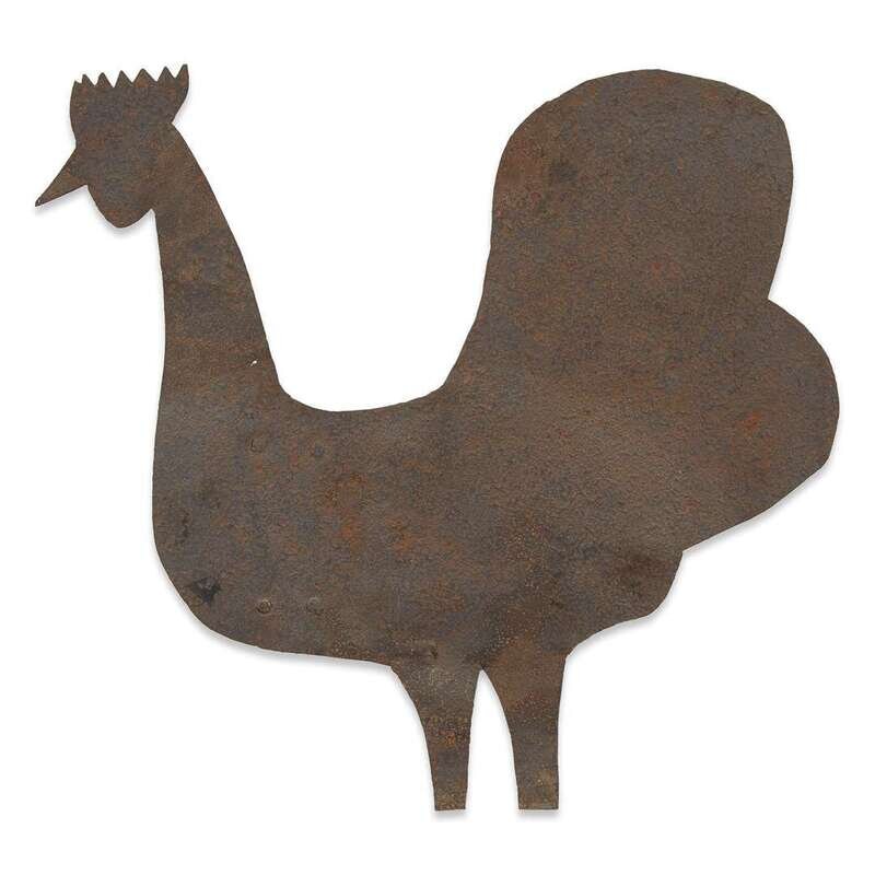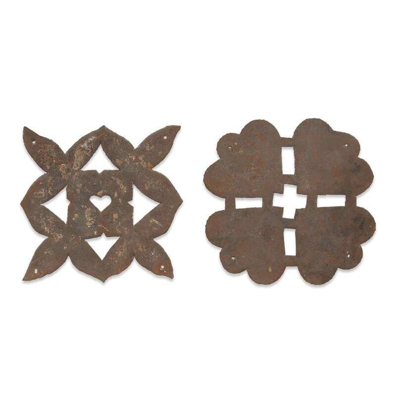 Two sheet metal quilt patterns and a sheet metal rooster weathervane 19th/20th century