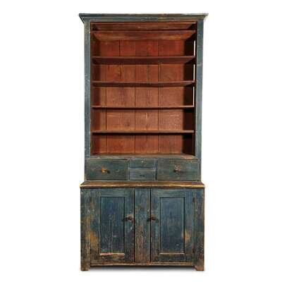 Blue-painted step-back cupboard early 19th century