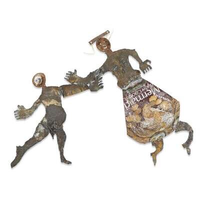 Titled on verso, mixed media and repurposed metal.