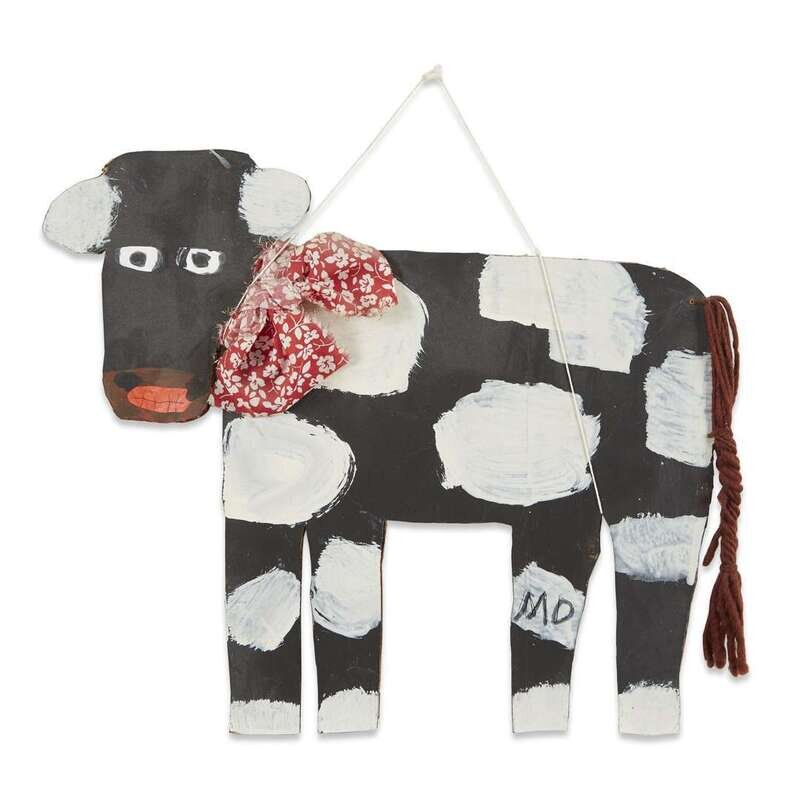 Mamie Deschillie (1920-2010) Black and white cow with red bow cutout