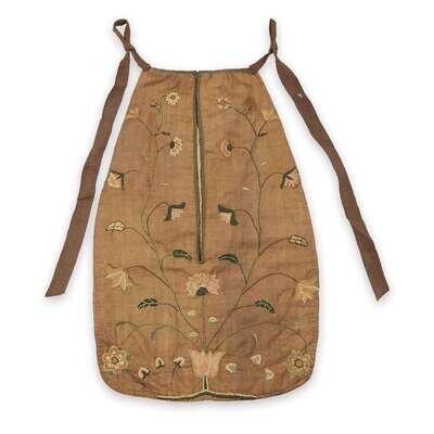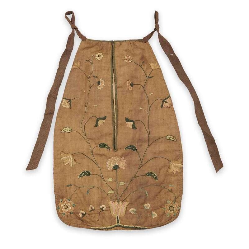 Worked with polychrome silk threads on a finely woven linen ground, backed by polished linen.