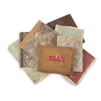 Including Charles Moon's Autograph Manuscript Journal, 1857-1861; Charles Moon's Autograph Manuscript Family Records, compiled ca. 1880 and earlier; Jane Moon's Autograph Manuscript Biographical and Spiritual accounts of various persons, ca. 1860; (Moon, Jane). Autograph Manuscript. "An account of some of the Journeys performed by James Moon & Wife," ca. 1860; (Moon, Anna J. and other family members). Autograph Manuscript Sentiment Book of. Bristol, Pennsylvania, 1874; Jane Haines' Autograph Manuscript Devotional Commonplace Book, ca. 1808-1809; Anonymous Manuscripts recording Society of Friends Meetings, ca. 1820s- 1850s; Anonymous Manuscript recording Society of Friends Meetings, ca. 1861-1863. 8 volumes in total.