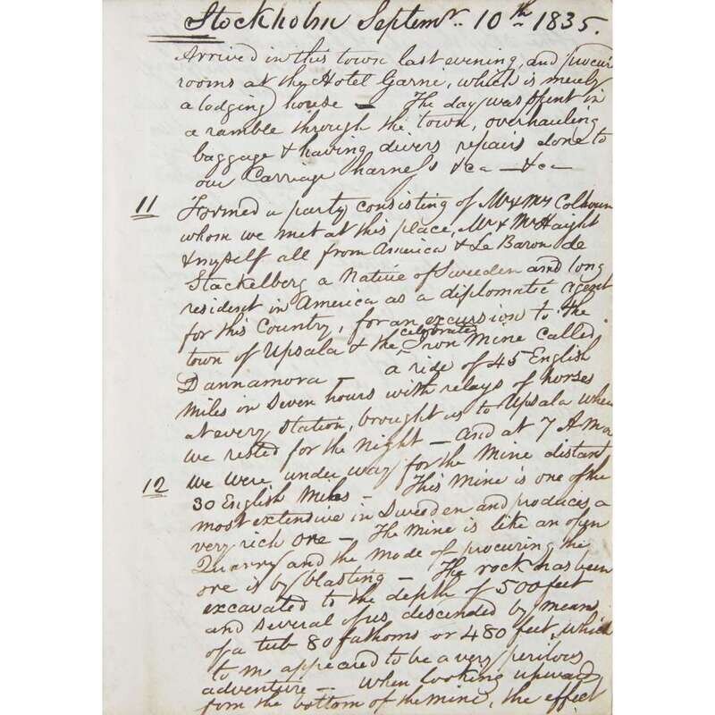 Six volumes recording travel from Philadelphia to Liverpool, Ireland, England, France, Rome and Stockholm, "Notes of Travel in the Old World in the Years 1834, '35, '36 and '37 by a Pennsylvanian."