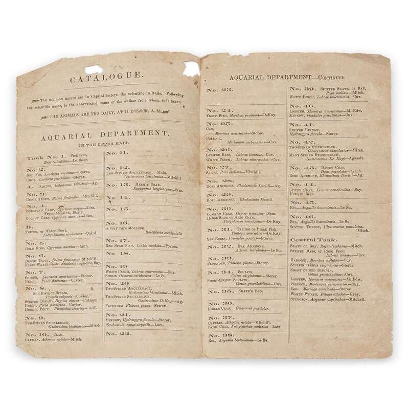 "Boston Aquarial and Zoological Gardens! A Living Whale! in a Communication to the Boston Journal, Professor Agassiz gives the following descriptions of the White Whale. Catalogue, Aquarial Department. Catalogue of the Animals," sheet folded into 4pp. .