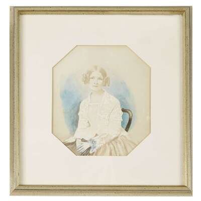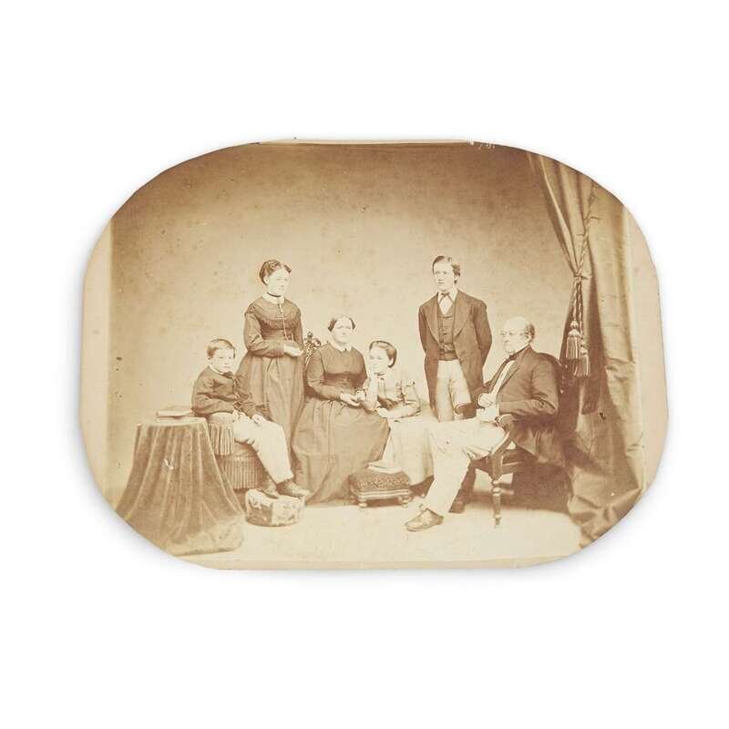 Including members of the Moon, Randolph, Eastburn, Sharpless and related families, approximately 65 cartes-de-visite, approx. 55 cabinet cards, a large format albumen print of Edward Taylor Randolph and Mary Sharpless Randolph and four children, together with a watercolor drawing of Caroline Wood (1838-1857) daughter of Julianna Randolph Wood.