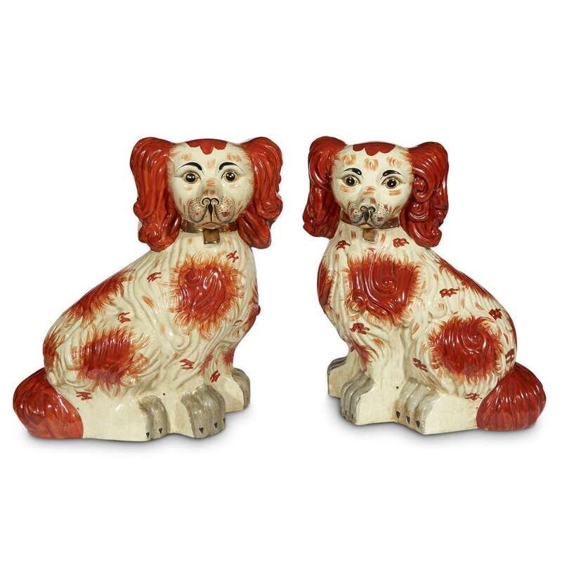 A monumental pair of Staffordshire style spaniels 20th century