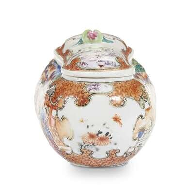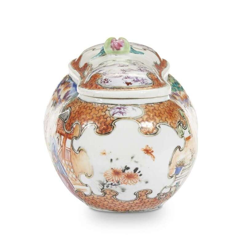 A Chinese export porcelain bean-form covered bourdaloue