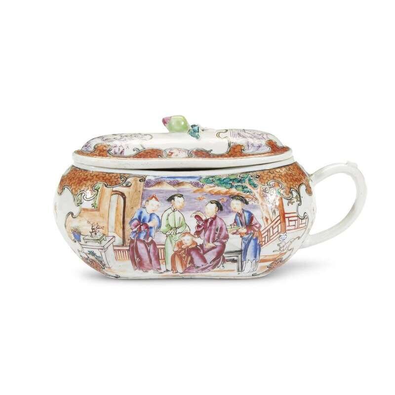 A Chinese export porcelain bean-form covered bourdaloue 19th century