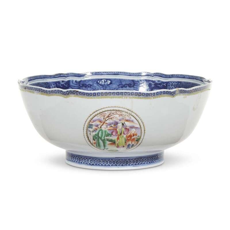 A Chinese export porcelain rose medallion punch bowl circa 1800