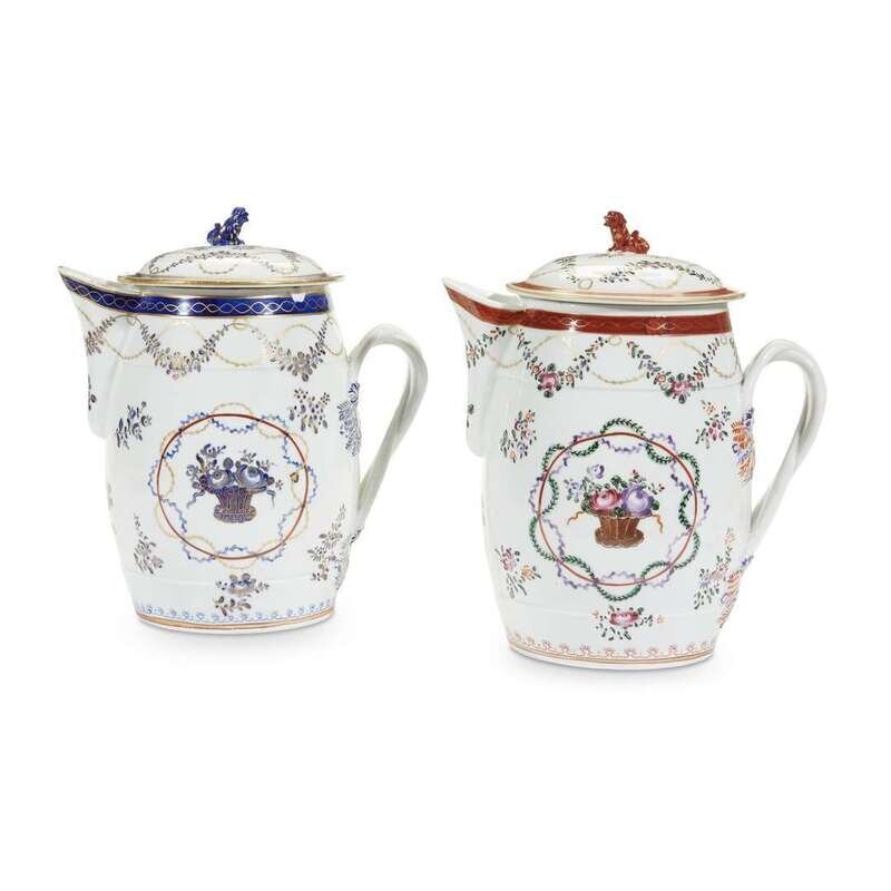 Two Samson Chinese export style porcelain covered pitchers late 19th century