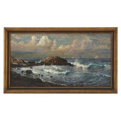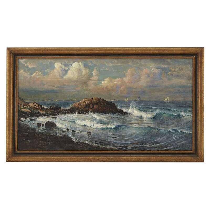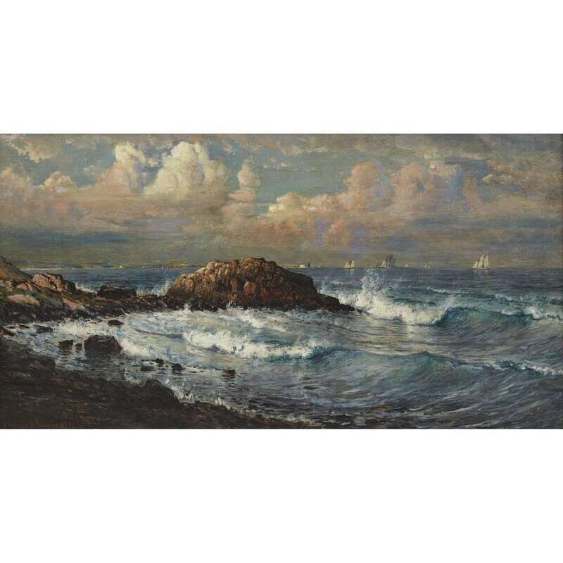 EDMUND DARCH LEWIS (AMERICAN 1835–1910) "WAVES OFF A ROCKY COAST"