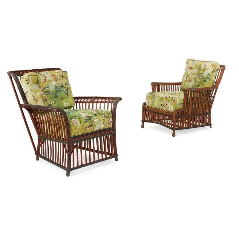 Two polychrome painted rattan lounge chairs american, circa 1900
