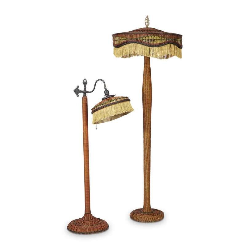 Two polychrome painted wicker floor lamps american, circa 1910