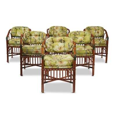 A set of six upholstered rattan horseshoe back armchairs american, circa 1920