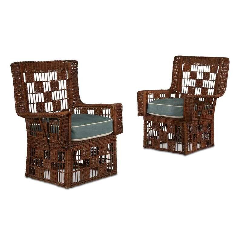 A pair of Arts & Crafts willow and leather armchairs
