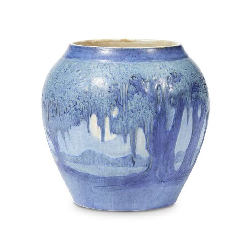 Anna Frances Simpson for Newcomb College Pottery scenic landscape vase, new orleans, louisiana, 1930