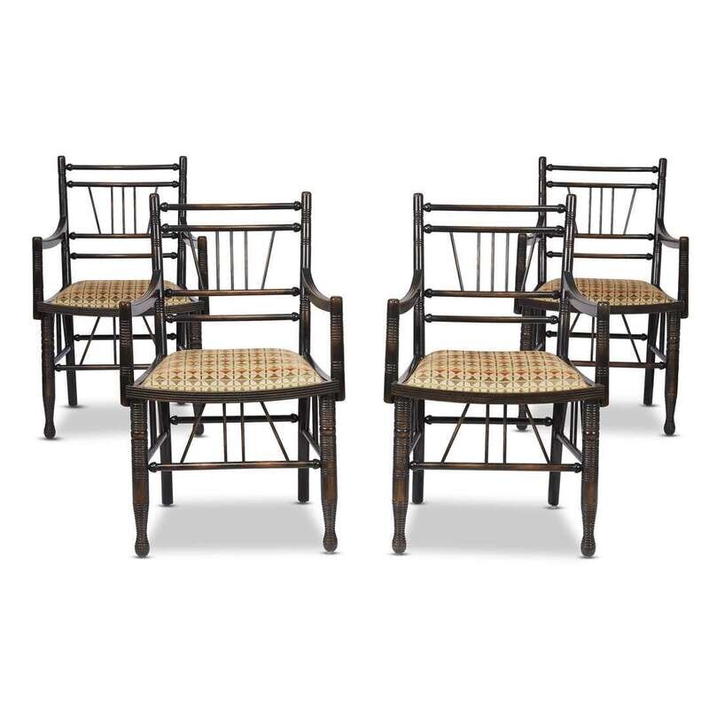 A set of four Arts & Crafts style ebonized 'Thebes' armchairs 20th century
