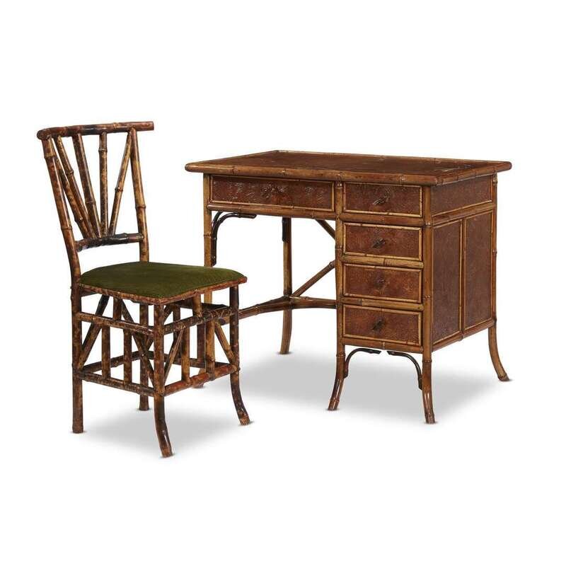 A Victorian Aesthetic Movement bamboo writing desk and chair circa 1890