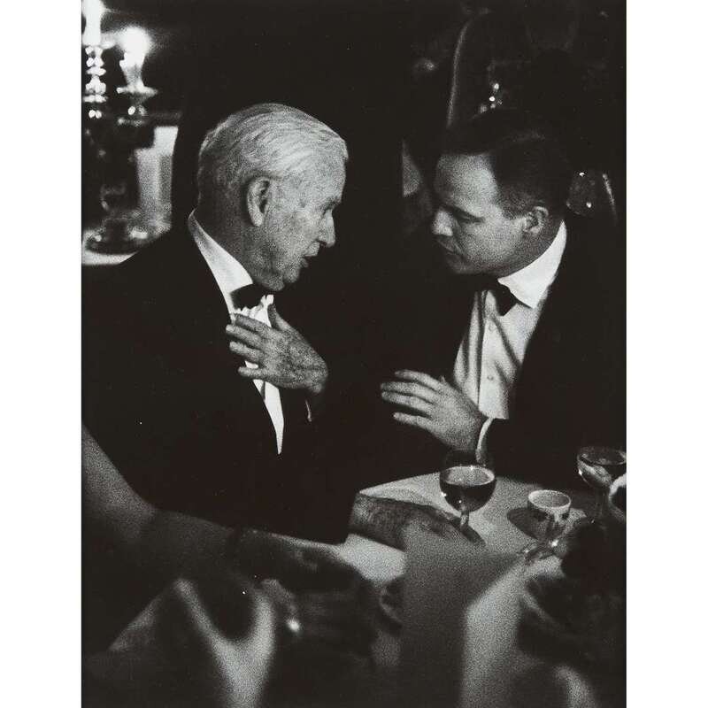 PATRICK LICHFIELD (BRITISH, 1939-2005) "CHARLIE CHAPLIN AND MARLON BRANDO AT THE PREMIERE PARTY FOR 'A COUNTESS FROM HONG KONG,' SAVOY HOTEL, LONDON"