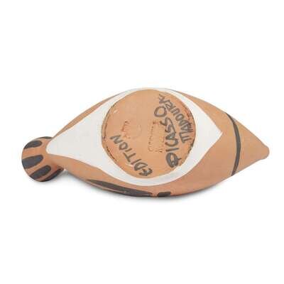 1952, from the edition of 500, with the 'EDITION PICASSO' and 'MADOURA PLEIN FEU' stamps on the underside. Red earthenware clay with decoration in engobes.