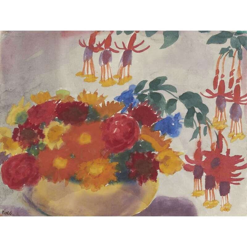 EMIL NOLDE (GERMAN, 1867-1956) BOWL OF FLOWERS WITH FUCHSIA