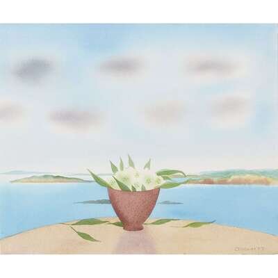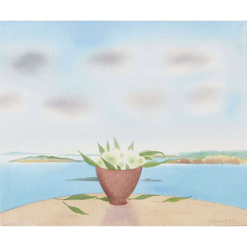 ELIZABETH OSBORNE (AMERICAN, B. 1936) SEASCAPE WITH FLOWERS