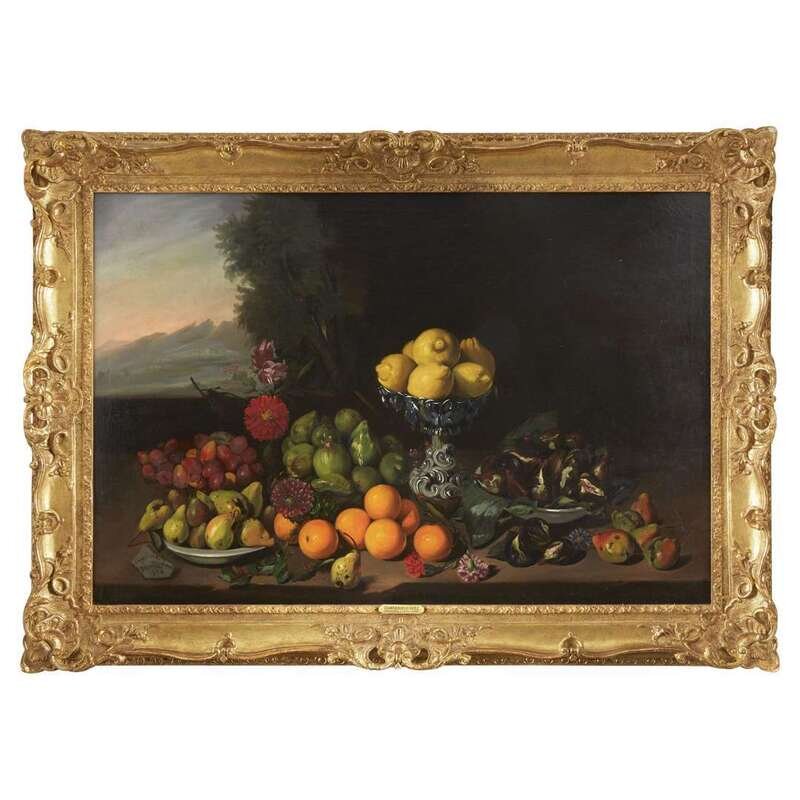 GUMERSINDO DIAZ (SPANISH 1841-1891) STILL LIFE WITH LEMONS, FIGS, ORANGES AND PEARS