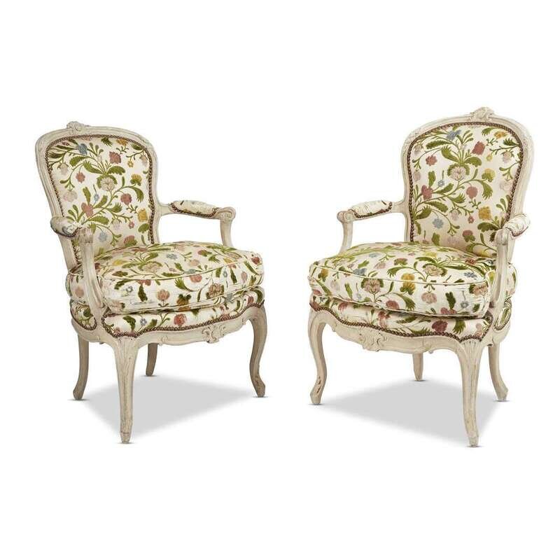 A pair of Louis XV white-painted fauteuils Jacques Jean-Baptiste II Tilliard (French, maître 1752), circa 1760