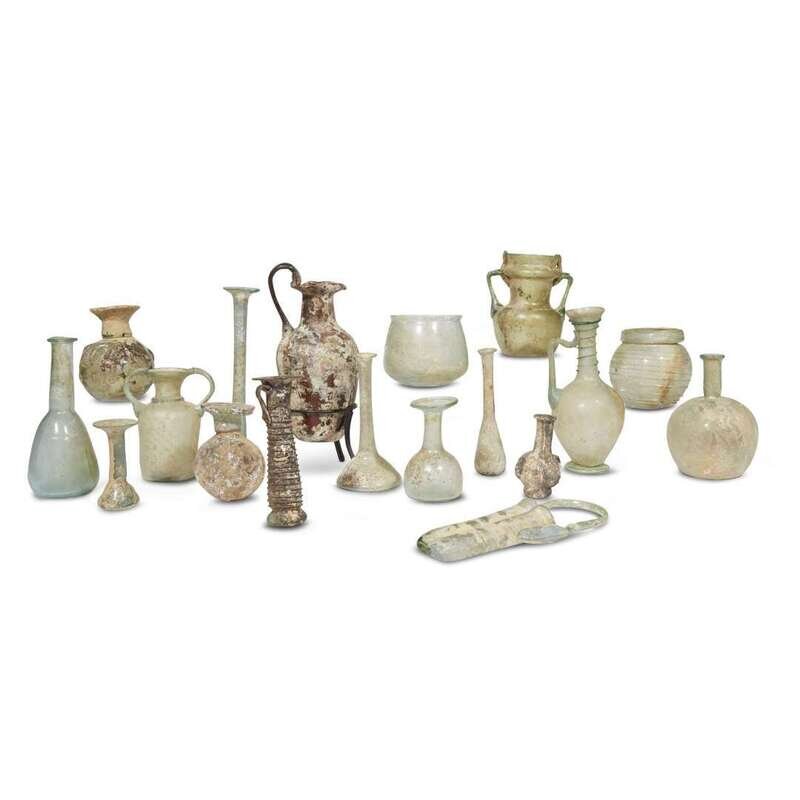 A large collection of Roman glass vessels and unguentaria circa 1st-4th centuries C.E.
