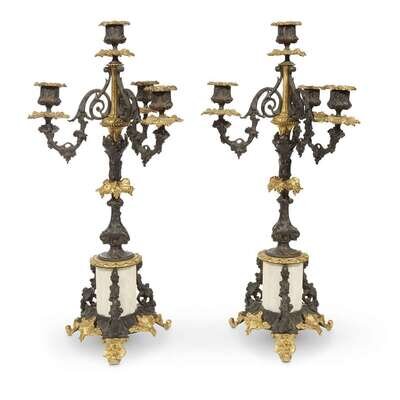 A pair of Renaissance Revival gilt-and patinated bronze four-light candelabra late 19th century