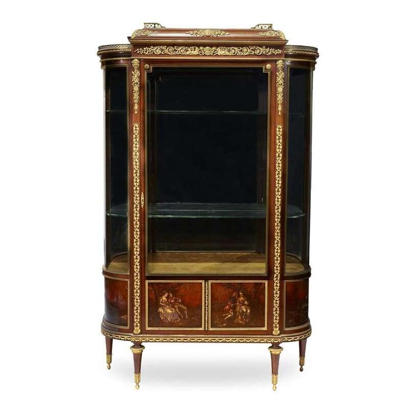 A Louis XVI style ormolu-mounted and vernis martin mahogany vitrine cabinet first quarter 20th century