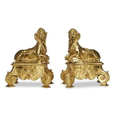 A pair of Empire Revival gilt-bronze sphinx-form chenets late 19th century