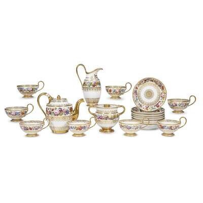 A fine Louis Philippe Sèvres hand-painted and parcel-gilt floral-decorated porcelain tea service 1837-39