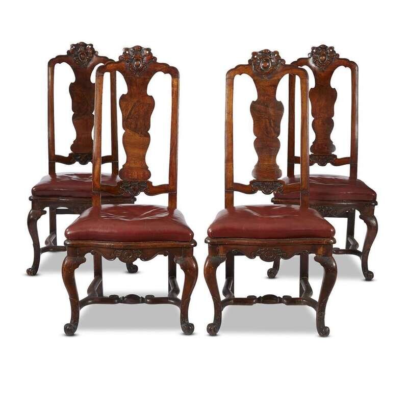 Four Portuguese Rococo figured walnut side chairs mid 18th century