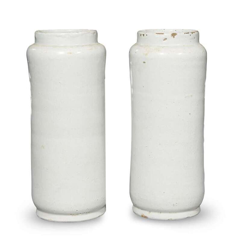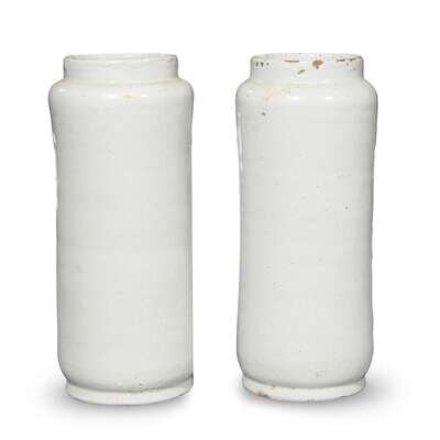 A pair of Continental tin-glazed earthenware rouleau vases likely Delft, 18th century