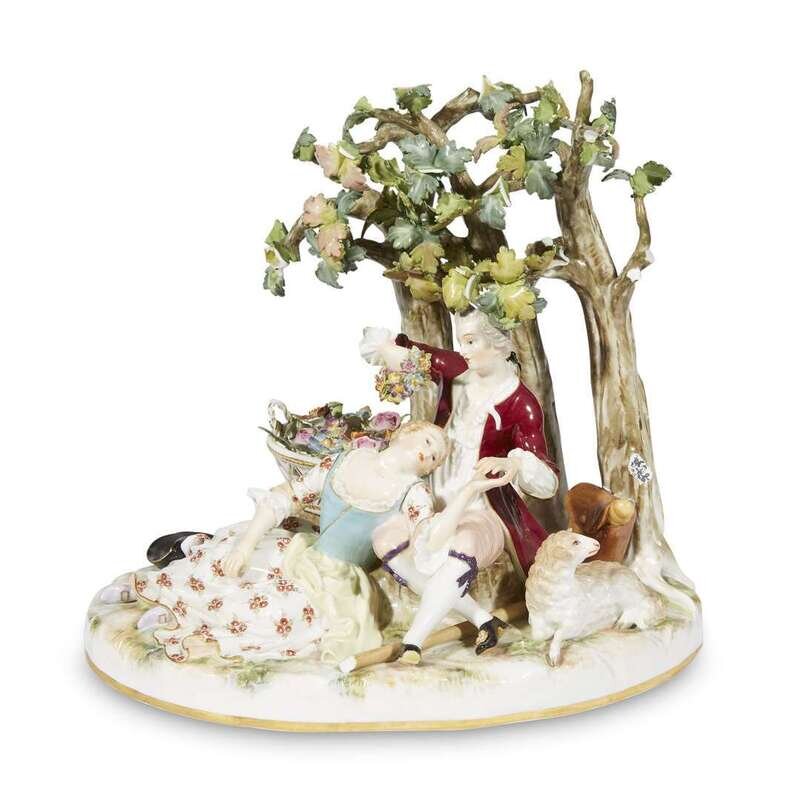 A large Meissen porcelain figural group of an amorous shepherd and shepherdess 1815-1860