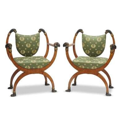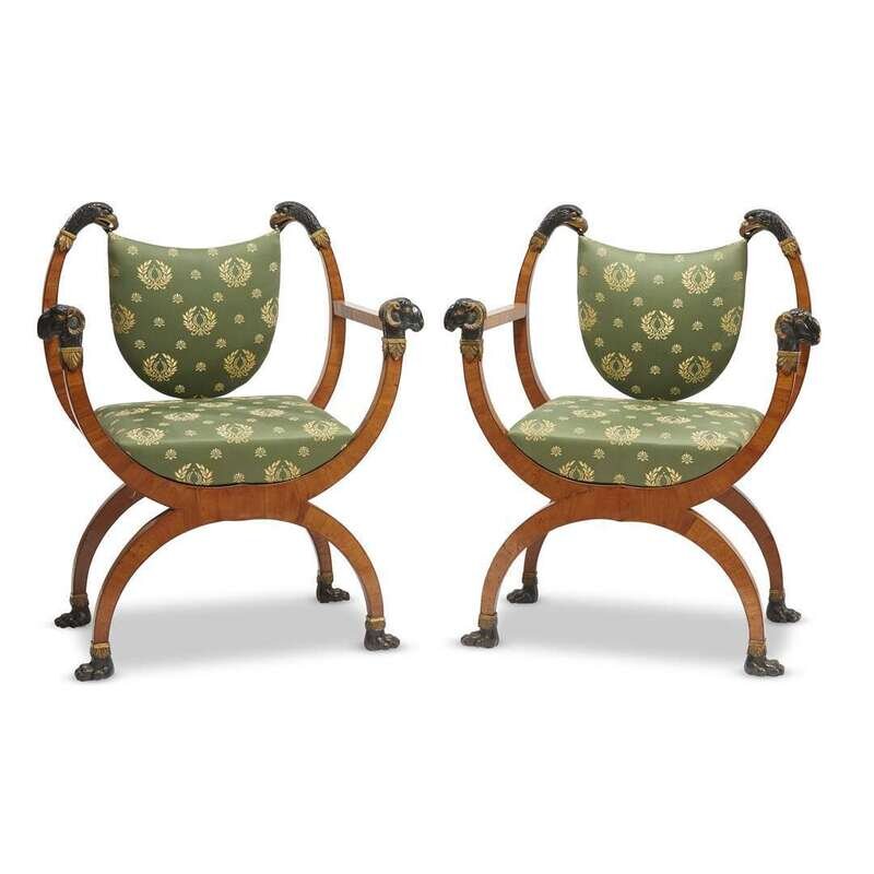A pair of Austrian Biedermeier parcel-gilt and parcel-ebonized fruitwood armchairs Vienna, early 19th century