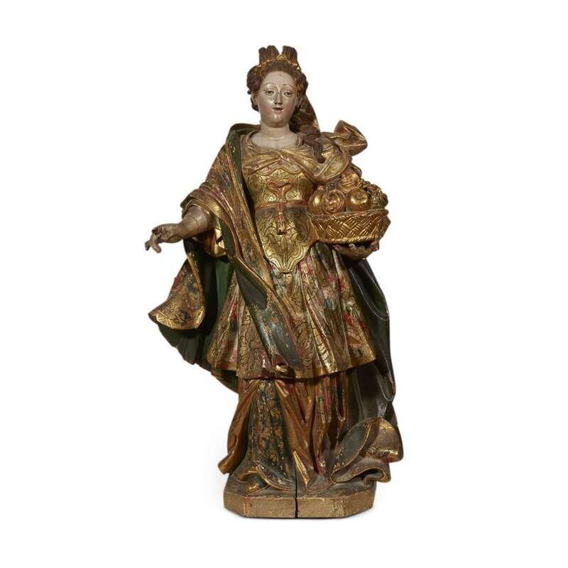 A Continental polychromed and parcel-gilt figure of Ceres late 17th/early 18th century