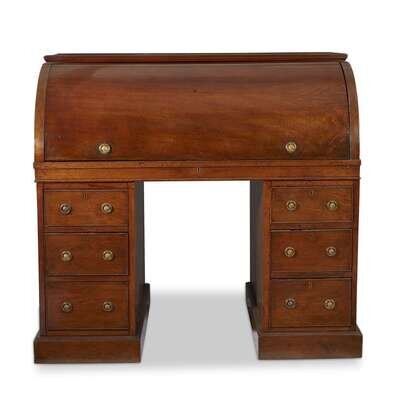 A Regency satinwood and mahogany roll-top pedestal desk circa 1815