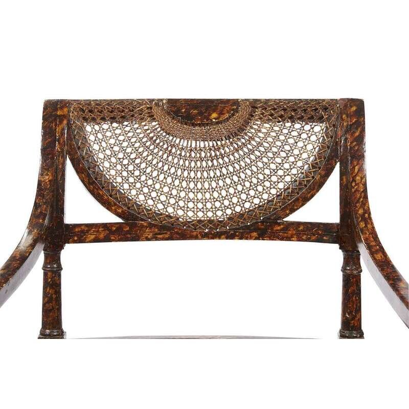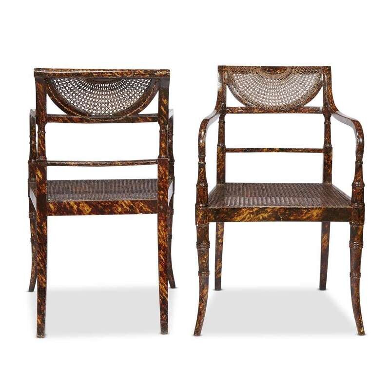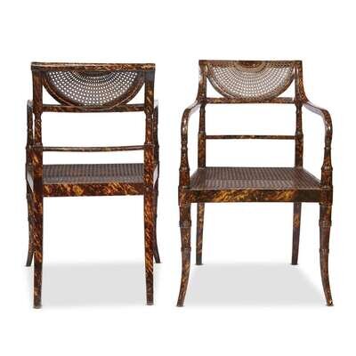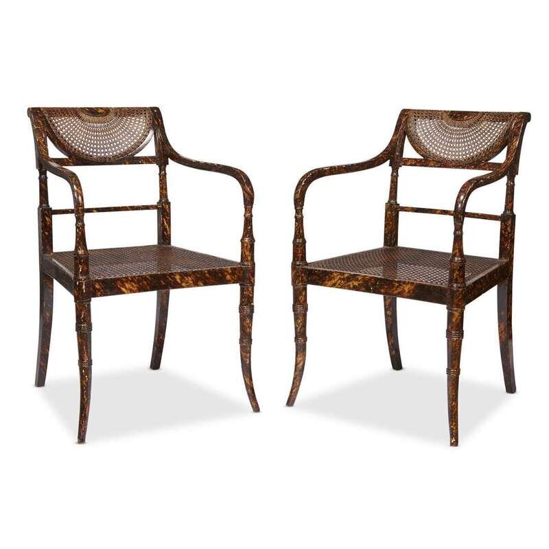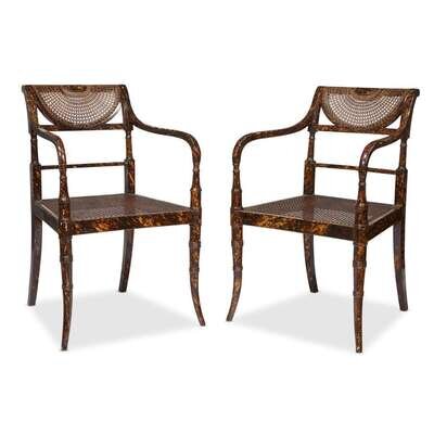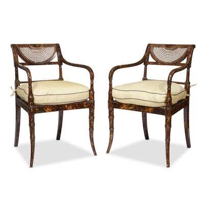 A fine pair of Regency faux-tortoiseshell painted caned armchairs circa 1810