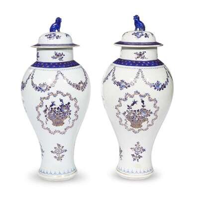 A pair of Samson Chinese export style blue and white covered vases late 19th century