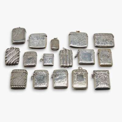 A collection of English silver match safes various makers, mostly Birmingham, 19th/20th century