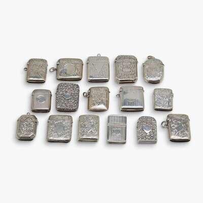 A collection of English silver match safes various makers, mostly Birmingham, 19th/20th century