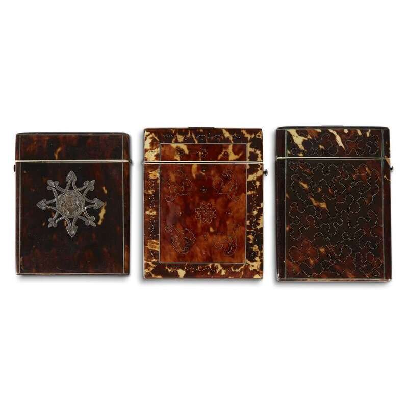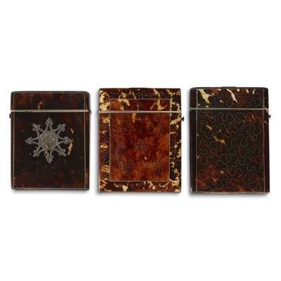 Three Victorian piqué-work decorated tortoiseshell card cases 19th century