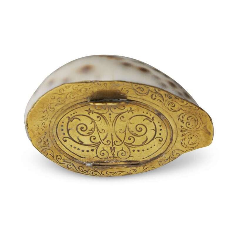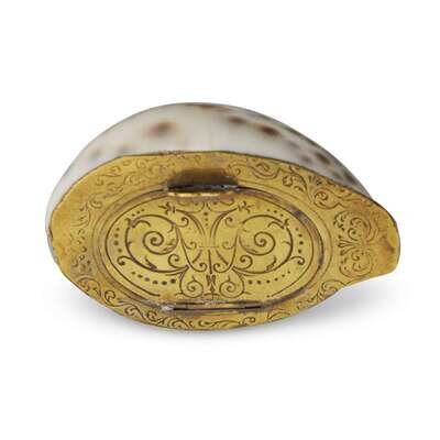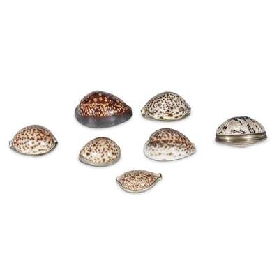 A group of seven English silver-mounted cowrie shell snuff boxes early 19th century