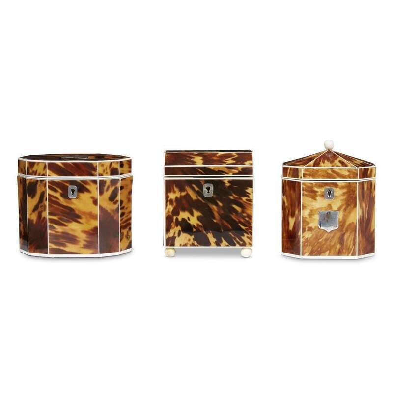 Three George III blonde tortoiseshell tea caddies late 18th/early 19th century