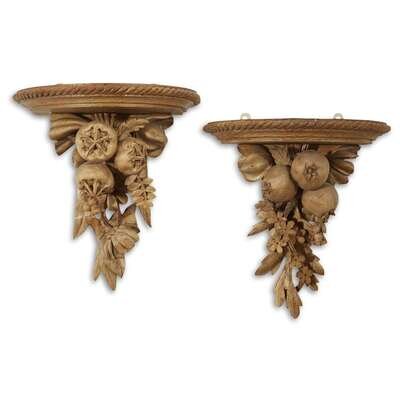 A pair of Continental cerused wood fruiting wall brackets 19th century